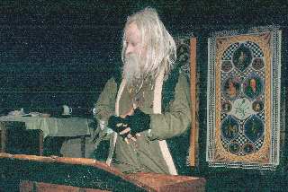 A critically acclaimed, vibrant and colourful screen, created as part of the stage set for a production of the play Brief Lives set in the late 17th century. In addition to the artist’s usual techniques of appliqué, hand embroidery and fabric paint, the additional transfer of images was added. Thus, the screen depicts well-known personalities of the 16th and 17th centuries, set in the decorative forms of that period. The central panel depicts the English monarchs from Queen Elizabeth I to James II, together with their spouses. The left panel shows famous faces of the Tudor Period. The right panel show celebrities of the Stuart period. |