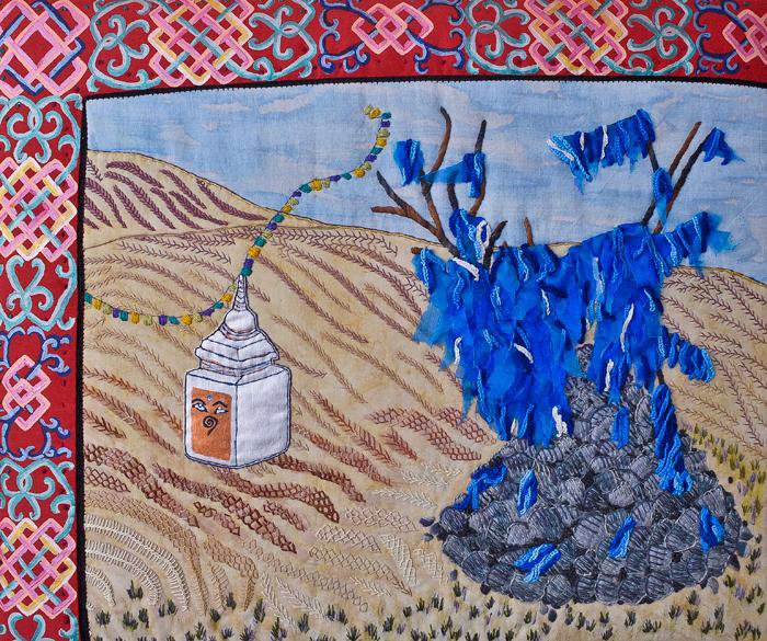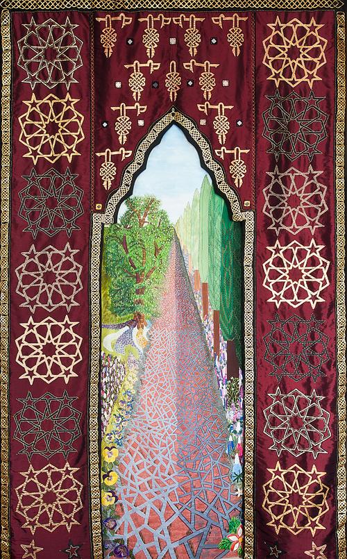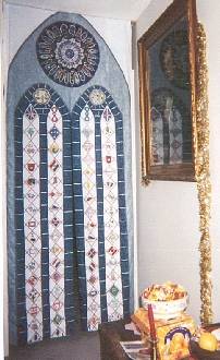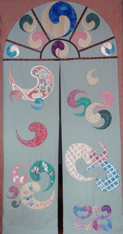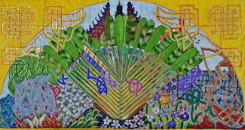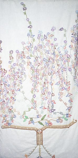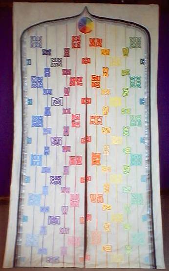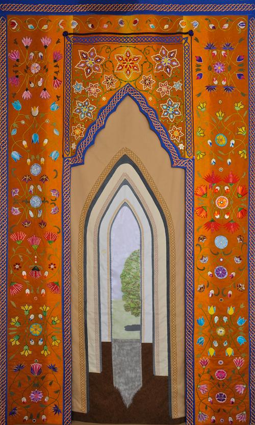 In 1998 Sheila underwent surgery for breast cancer which changed her life forever. Not expecting to survive, she began in her spare time to create portals and large wall hangings for her family to keep as heirlooms - she had learnt embroidery in primary school but then had to study Latin rather than art or any crafts.