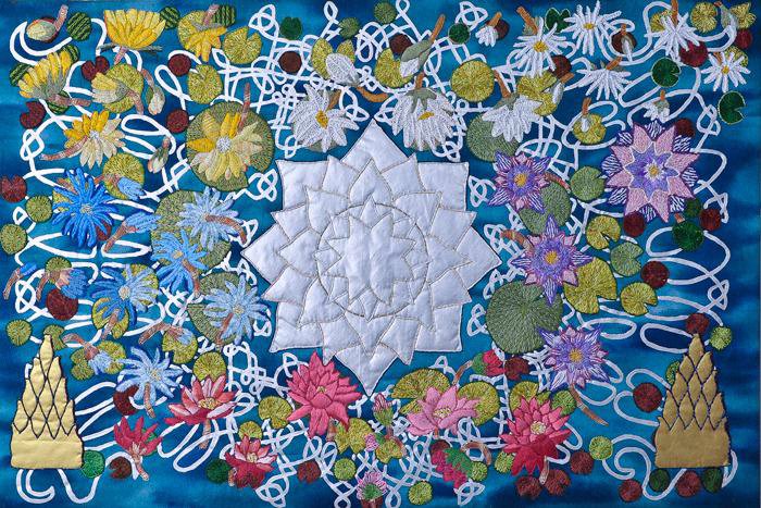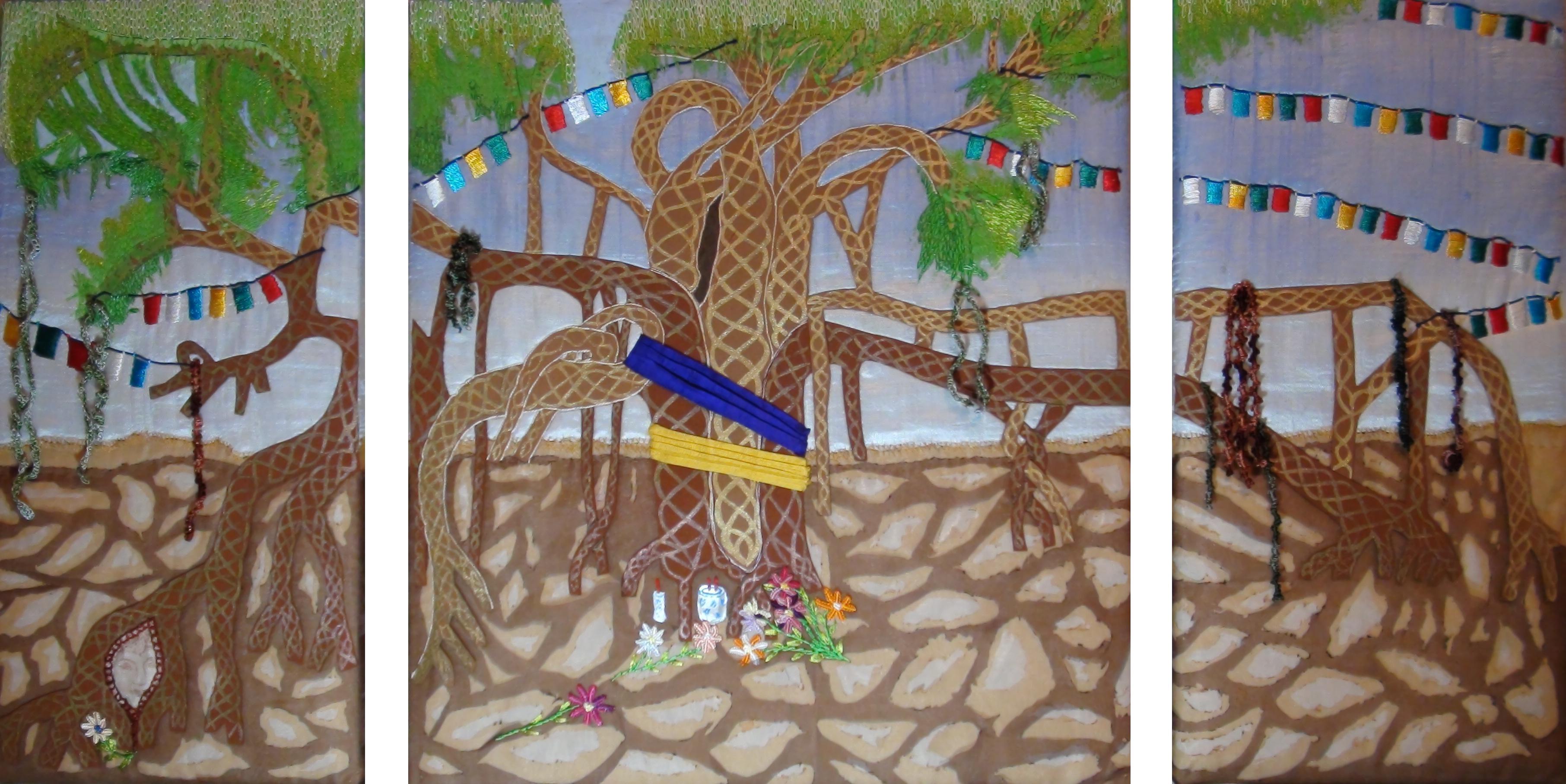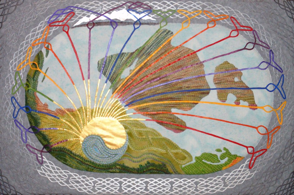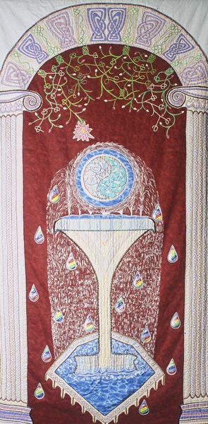 Within five years she realised, in being invited to exhibit to the public, that she had unwittingly developed a unique artform of mixed media, bringing together paint, hand embroidery, appliqué and other media, using Celtic designs (ancient and new) to express ideas. From 2003 to 2013, her other work was put on hold as the artwork of Cecile Jacobs has taken over her life full-time.